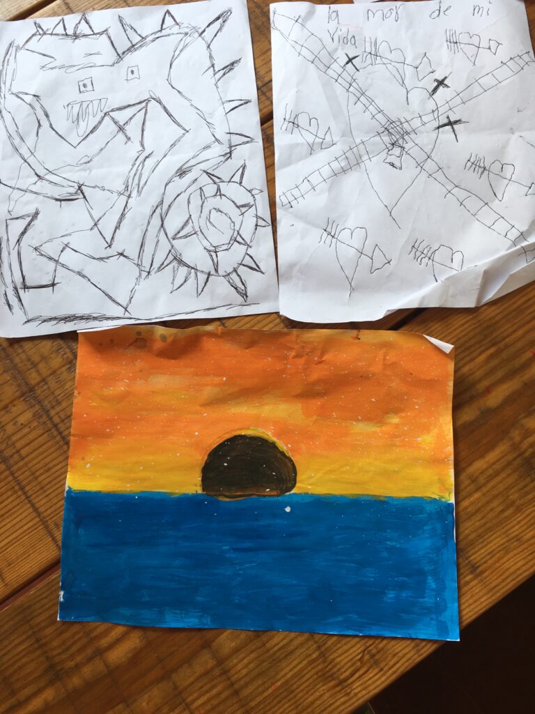 Immer wenn ich solche Beispiele höre und miterlebe, erkenne ich einmal mehr die Wichtigkeit von sicheren Umgebungen für Kinder und Jugendliche, so auch der unserer Bibliothek. Hier können die Kinder und Jugendliche einfach sich selbst sein. Die neue Bibliothek in La Union, dem Nachbarsdorf, läuft gut. Leider sind die beiden Mütter, welche mich anfangs unterstützt haben, nicht mehr so ganz motiviert. Aber die Kinder schon; letzte Woche kamen 21 Kinder und wir hatten schon fast ein Platz-Problem 😊 Um das Vertrauen der Kinder zu gewinnen und eine Beziehung zu ihnen aufzubauen, lasse ich sie momentan das machen, was sie gerne möchten. Und das ist bei fast allen Malen. Die Bilder sprechen oft mehr als viele Worte.